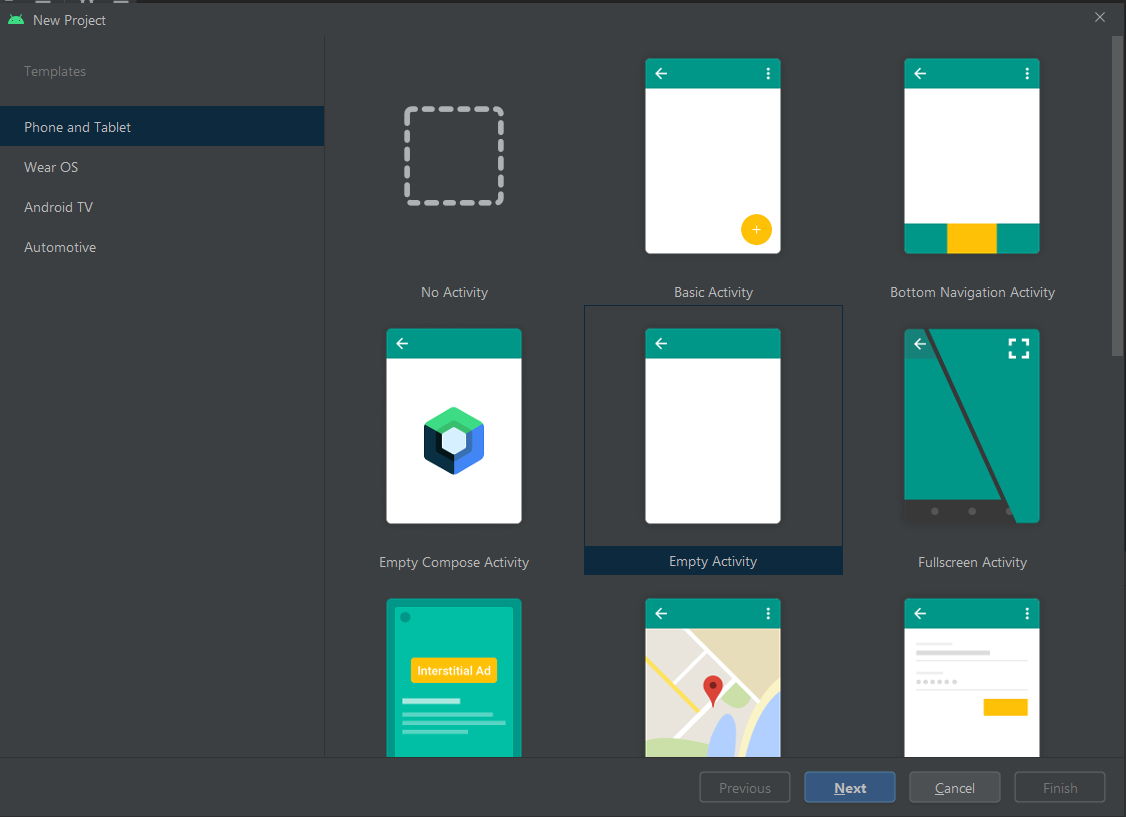 Wybieramy Empty Activity