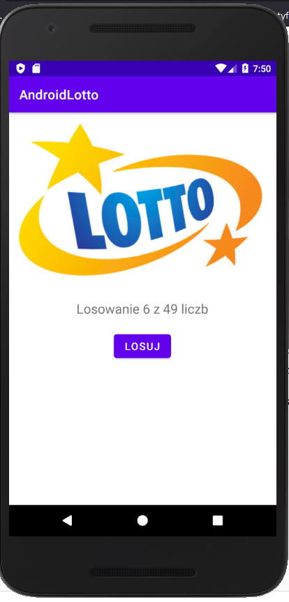 • TextView – zawierający napis „Losowanie 6 z 49 liczb”